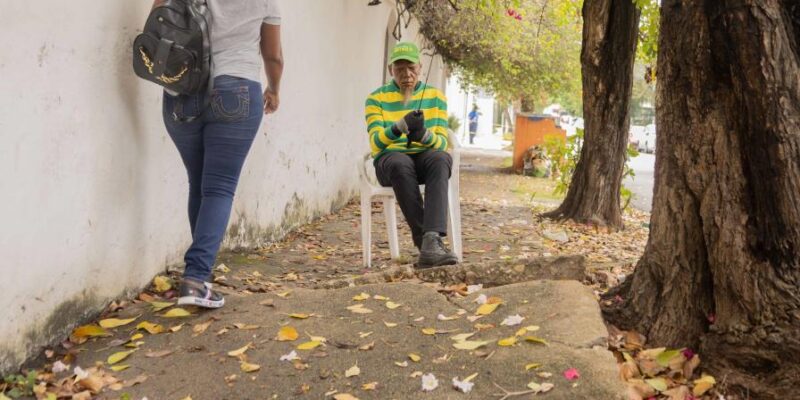 Si camina por la acera este de la calle Rosa Duarte, entre la Moisés García y César Nicolás Penson, en Gascue, tenga cuidado con la acera levantada.
