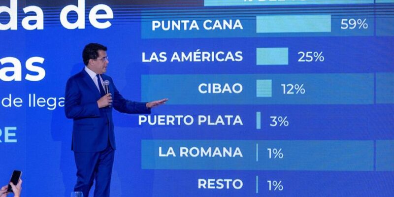 Al analizar las llegadas aéreas en septiembre, los datos reflejan que el 59 % de los turistas ingresó al país por el Aeropuerto Internacional de Punta Cana, seguido de Las Américas (25 %), Cibao (12 %), Puerto Plata (3 %) y La Romana (1 %).