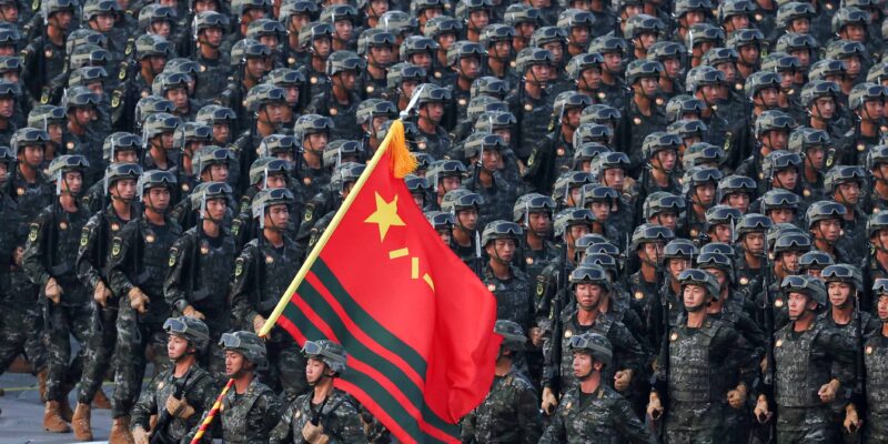 Xi inspeccionó las tropas y el armamento desde un auto descapotable que avanzaba por la amplia avenida Chang’an.