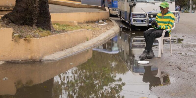 El agua que desciende desde la parte alta se acumula en esta zona, debido a que el sistema de drenaje pluvial no funciona adecuadamente. Esta acumulación de agua puede durar varios días para infiltrarse en el terreno.
