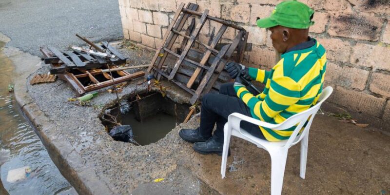 Criadero de mosquitos y peligro peatonal por imbornal destruido en Santo Domingo Este