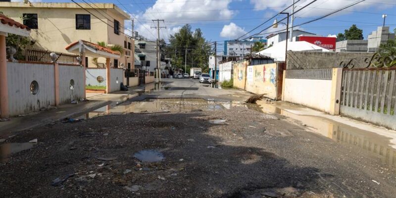 Moradores del Ensanche Quisqueya, Distrito Nacional, demandaron la reparación del tramo de la calle Pedro Albizu Campos con Doctor Fernando Alberto Defilló que está en condiciones deplorables por la cantidad de hoyos y agua estancada.