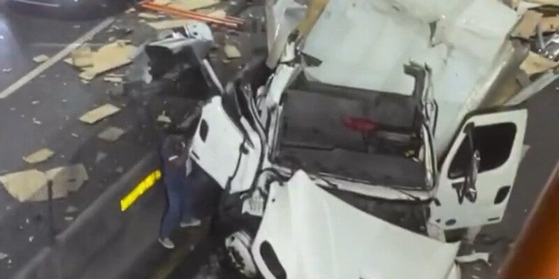 Otro hecho ocurrió en el Distrito Nacional, donde dos personas resultaron heridas, cuando un vehículo de carga chocó a una yipeta, perdió el control y cayó al desnivel de la avenida 27 de Febrero con doctor Defilló.